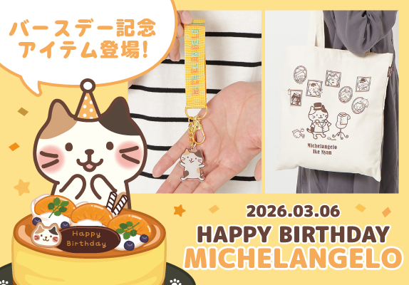 ふくふくにゃんこ ミケランジェロ バースデー 刺繡 タグ キーホルダー (2026年発売)