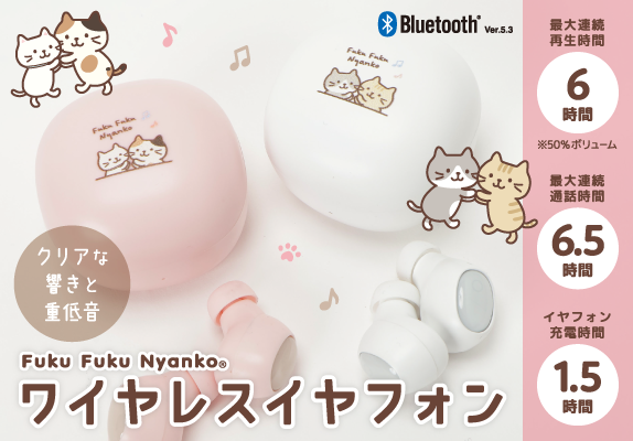 ふくふくにゃんこ ワイヤレス イヤホン ver.②