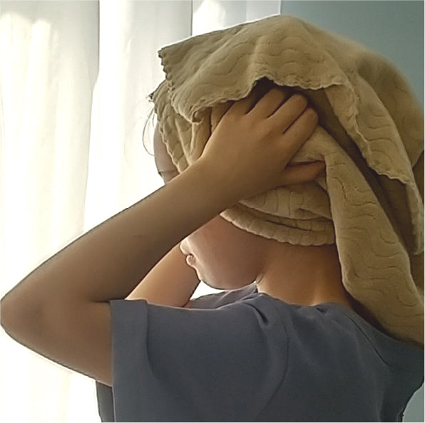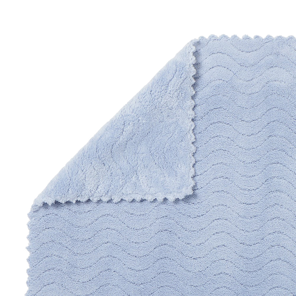 ウェーブ状の凸凹がしっかり手指にフィット。つかみやすいから拭きやすく、頭にまいてもとれにくい。