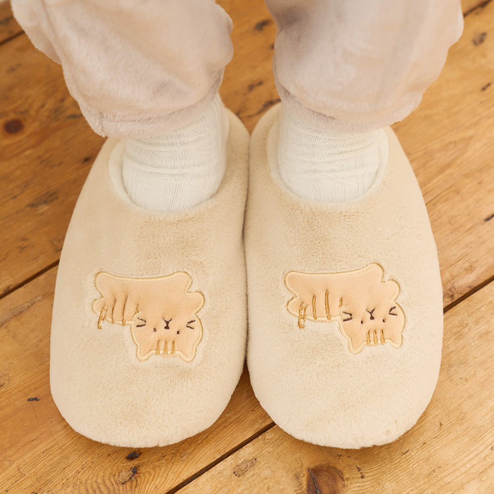 ふわふわの柔らかい肌触りが気持ちいいスリッパ。