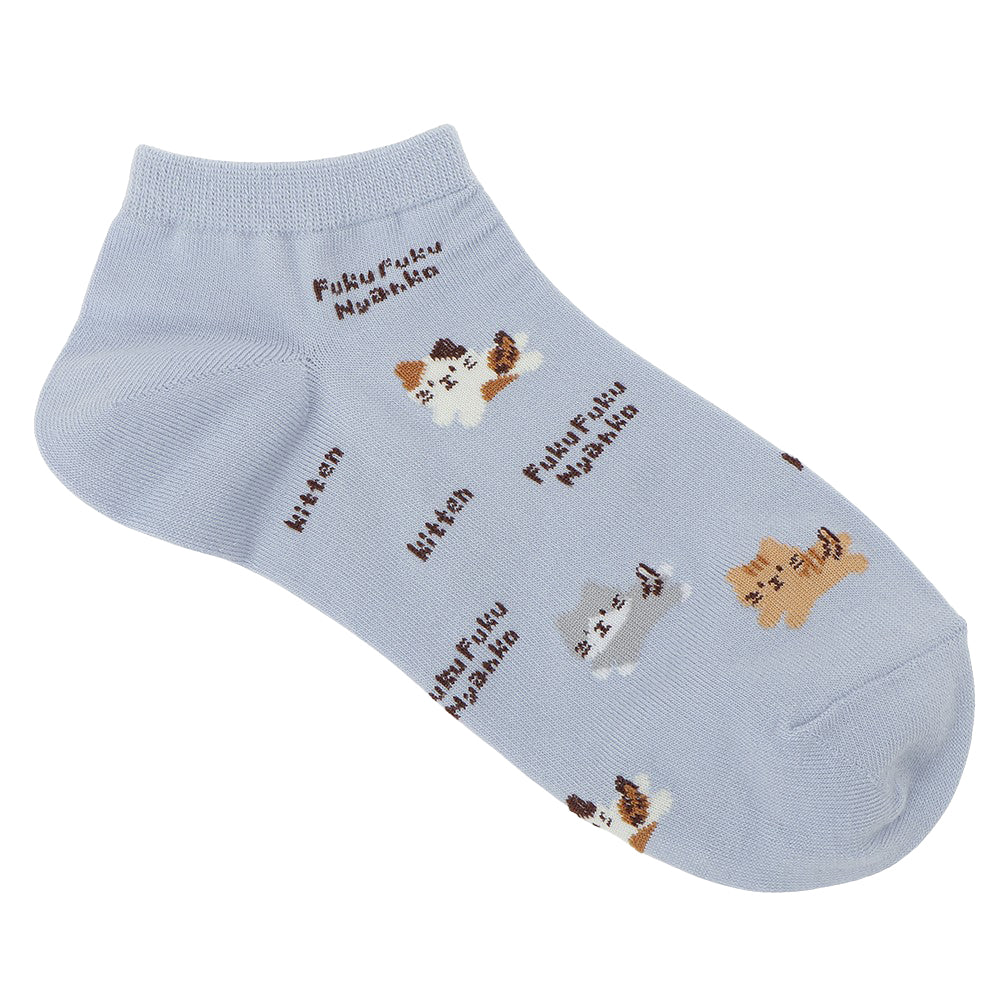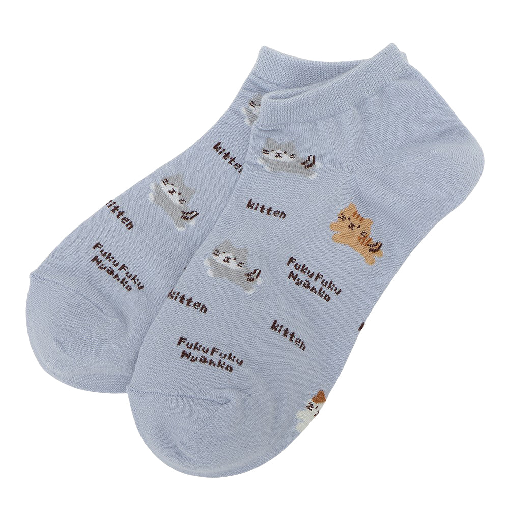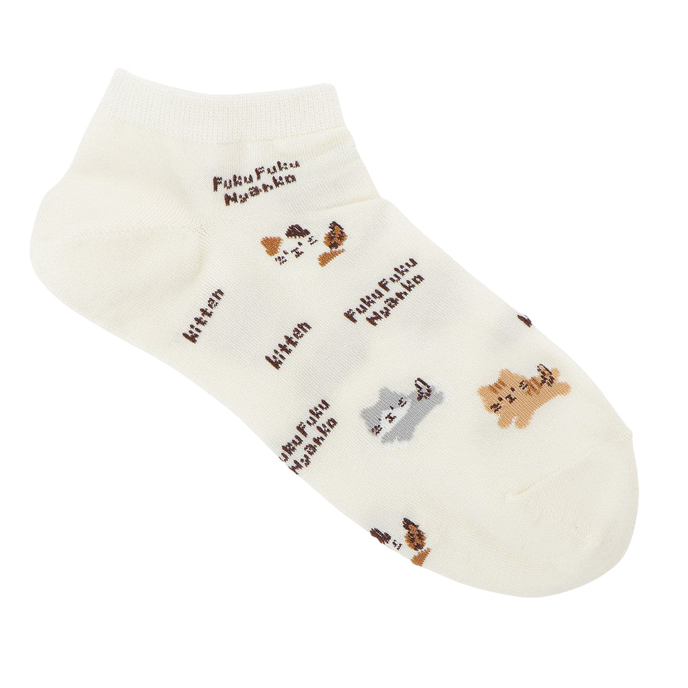 ふんわりとしたにゃんこがかわいい、スニーカーやサンダルにぴったりのショートソックスです。