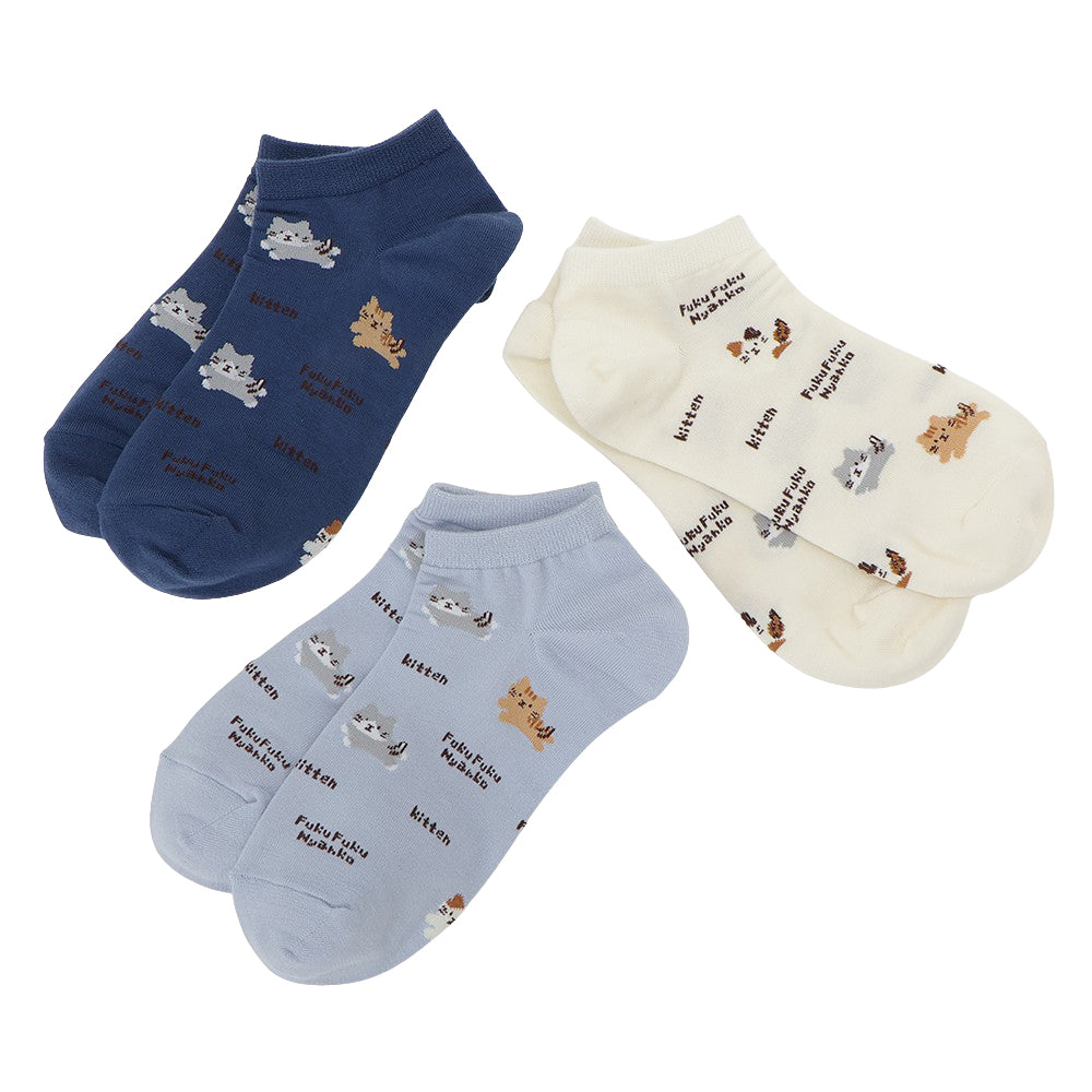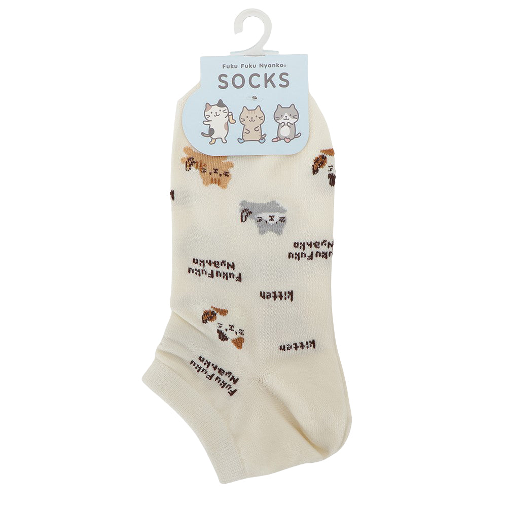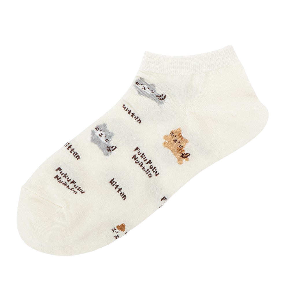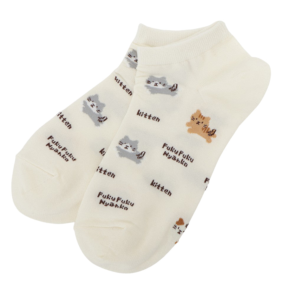 ふんわりとしたにゃんこがかわいい、スニーカーやサンダルにぴったりのショートソックスです。