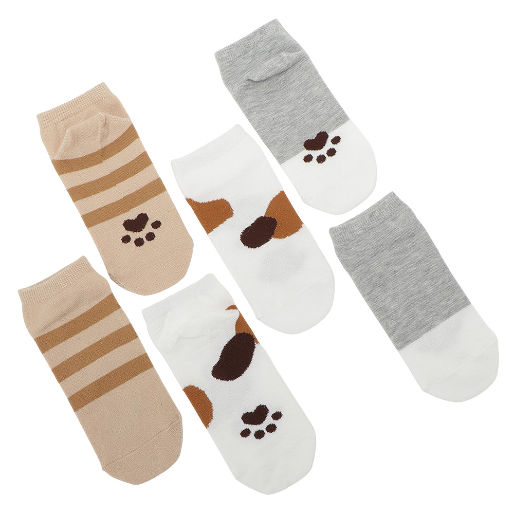 ミケ、チャチャ、ハッチの足柄がかわいい、スニーカーやサンダルにぴったりのショートソックスです。