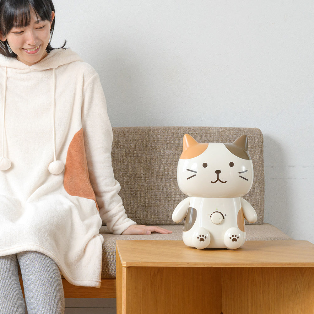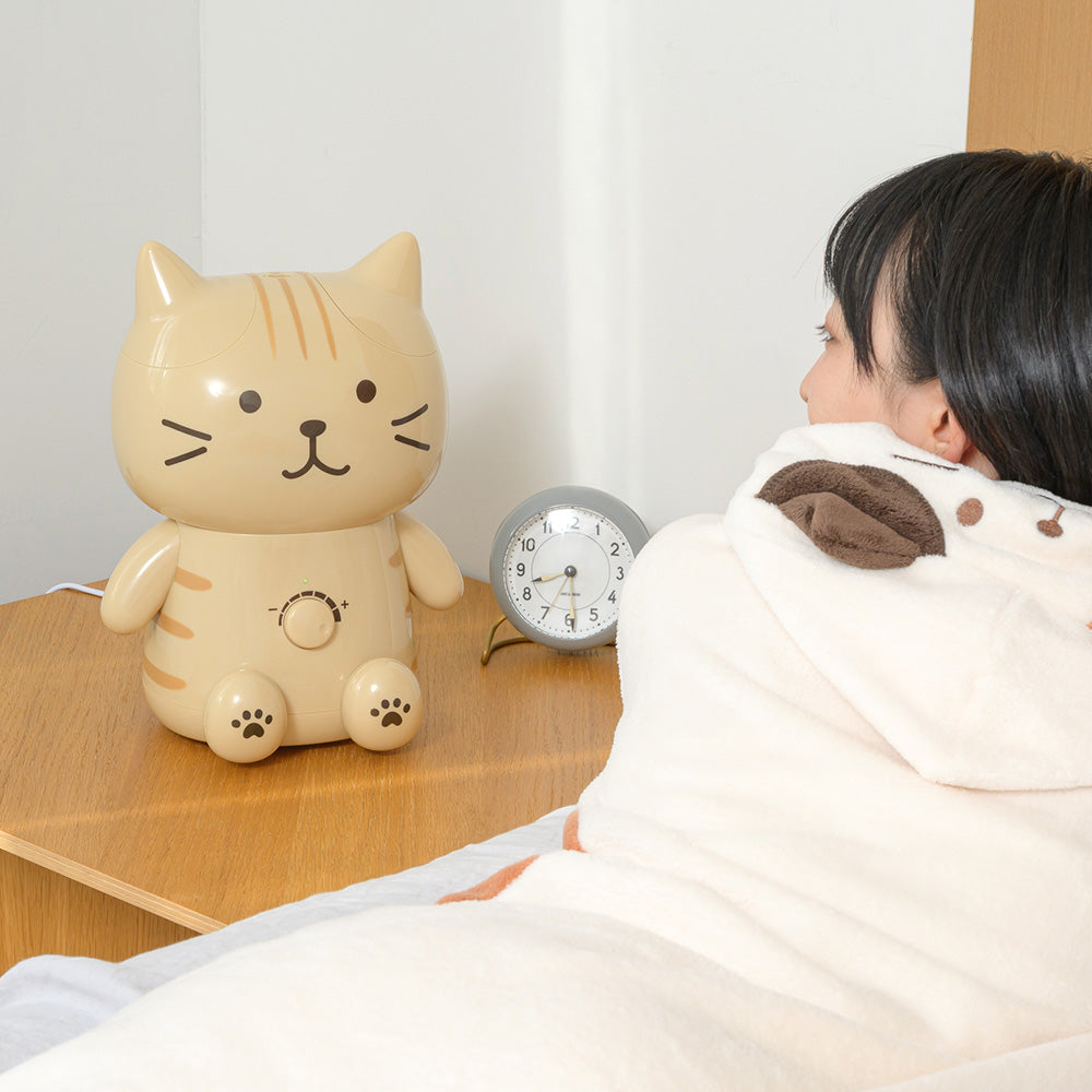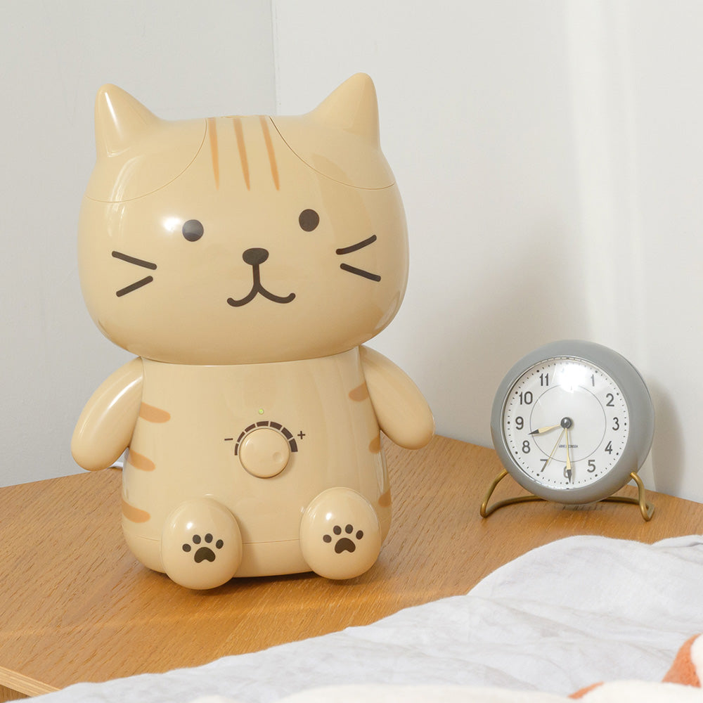 熱を使わない超音波式なので小さいお子様やペットがいるおうちでも安心。おへそのところにダイヤルが付いていて、ミストの量が調節できます。