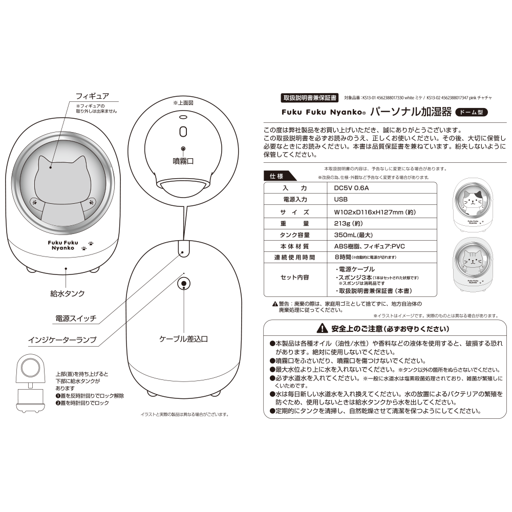 【スペック】 | (約)横10.2×奥行11.6×高さ12.7cm/タンク容量:最大350ml/重量:213g/素材:本体…ABS樹脂、フィギュア…PVC/付属品:電源ケーブル・スポンジ3本(1本はセットされた状態)・取扱説明書兼保証書 |