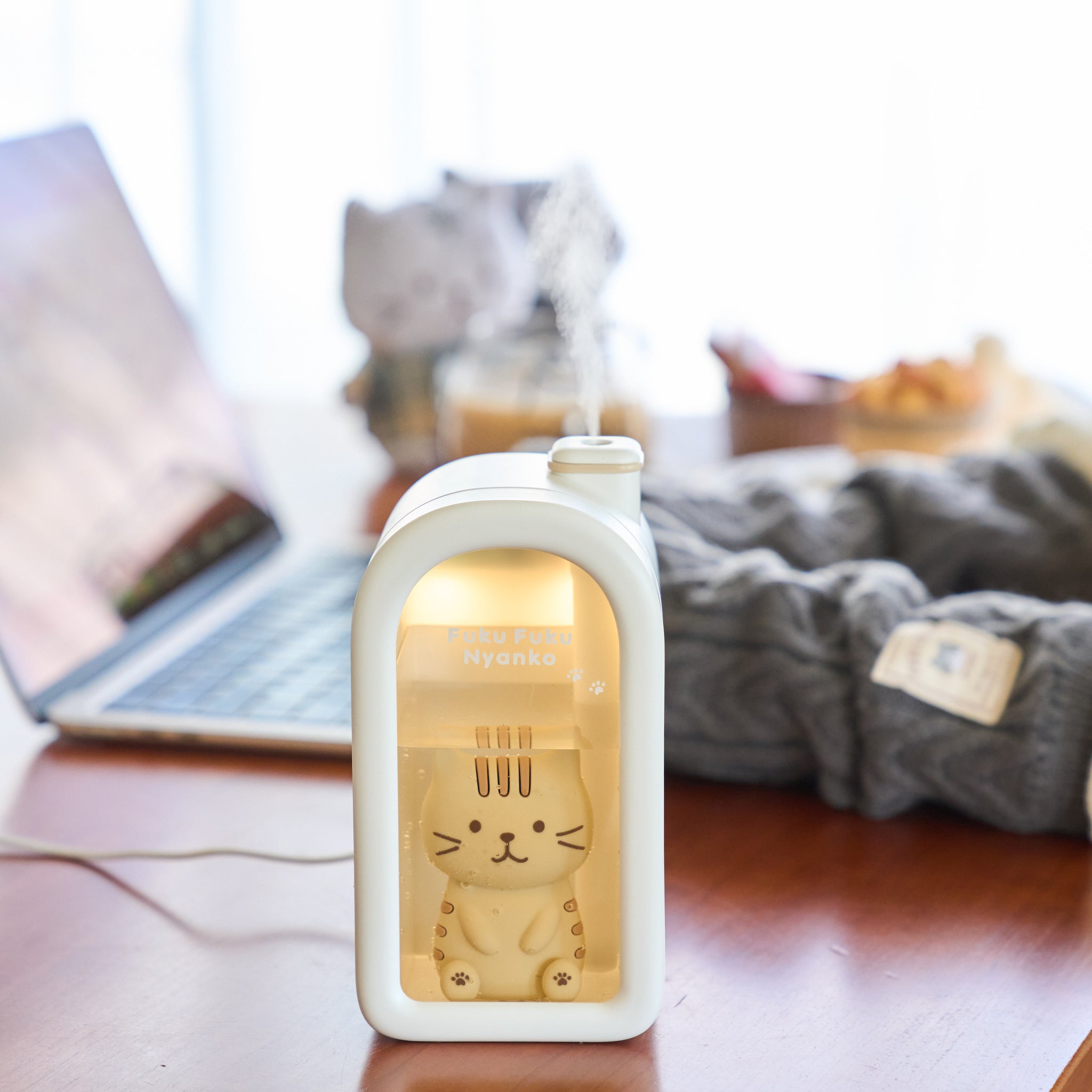 ご自身の近くに置いて(身の回り)狭い範囲での加湿を目的として企画しております。