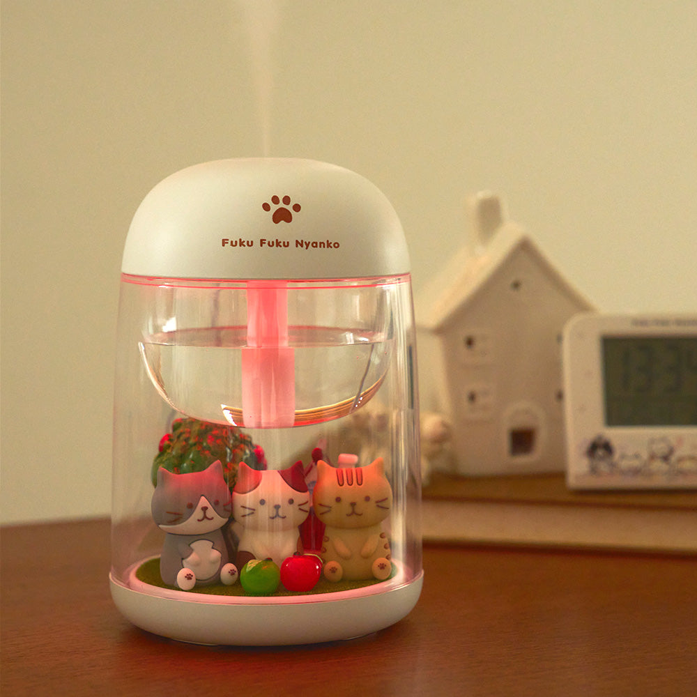 乾燥が気になる季節に!中のにゃんこやガーデンモチーフのフィギュアがかわいい超音波式加湿器。