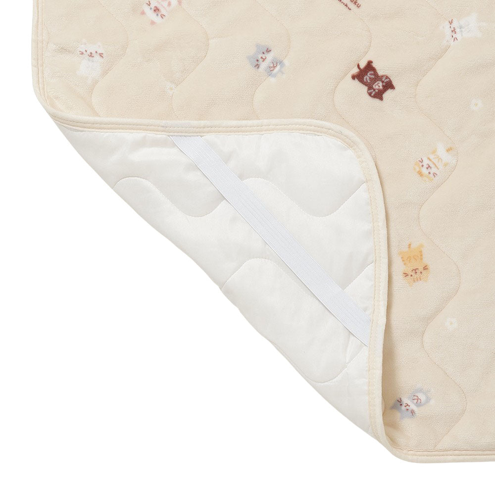 素材 | ポリエステル 中綿:吸湿発熱エコウォーム使用 四つ角固定ゴム付き |
