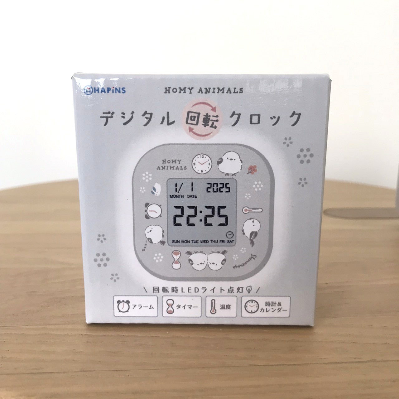 『時刻&日付』・『アラーム』・『温度』・『タイマー』の4つの機能が時計の向きを変えるだけで簡単に表示されるデジタル回転クロックの新柄が登場