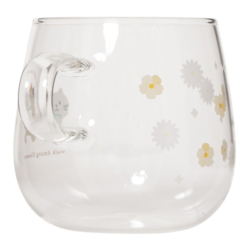 ころんとしたフォルムが可愛い耐熱ガラスマグ。それぞれのにゃんこの柄に合わせた背景がポイント!