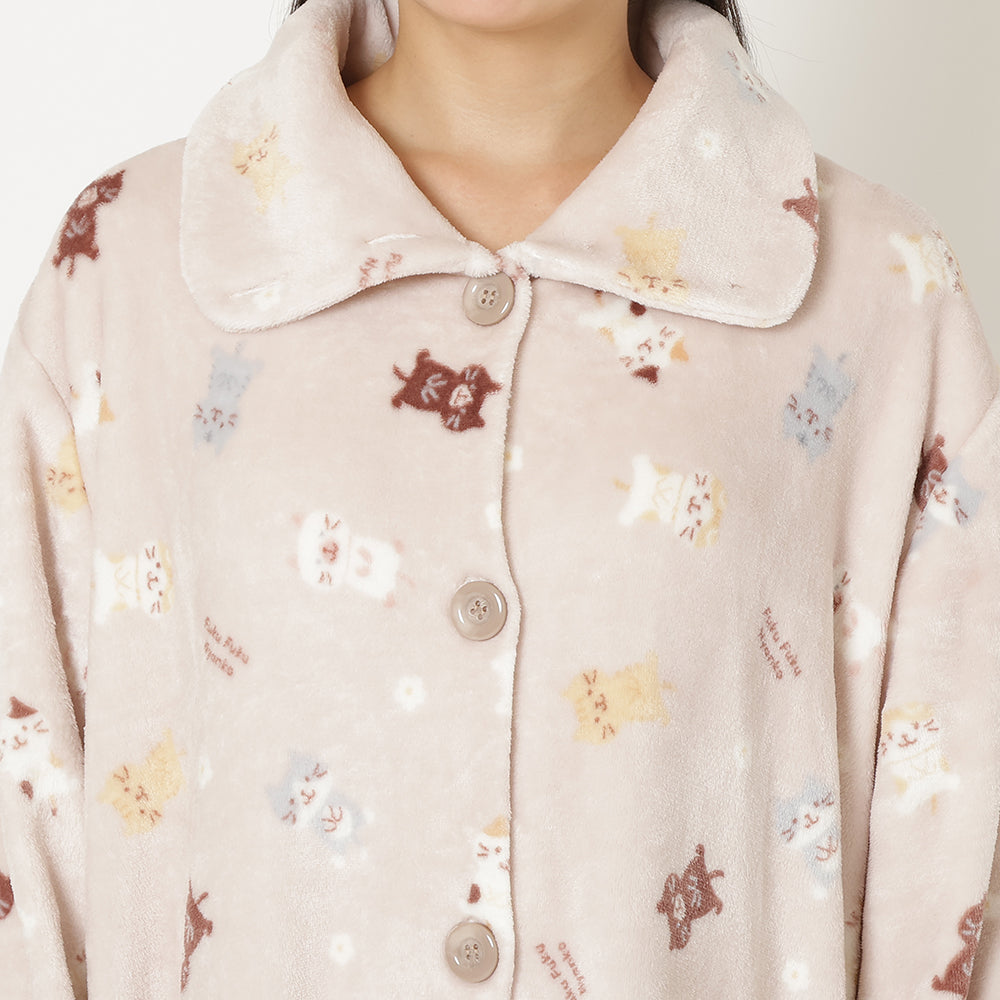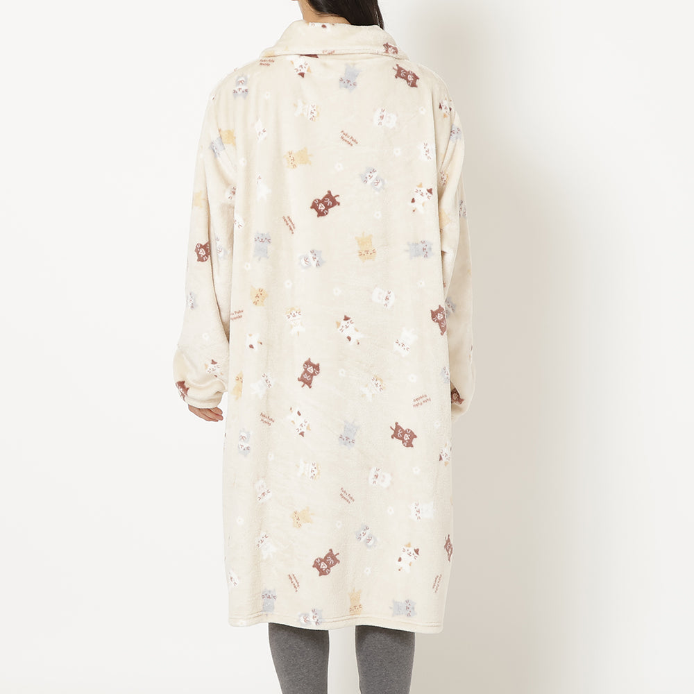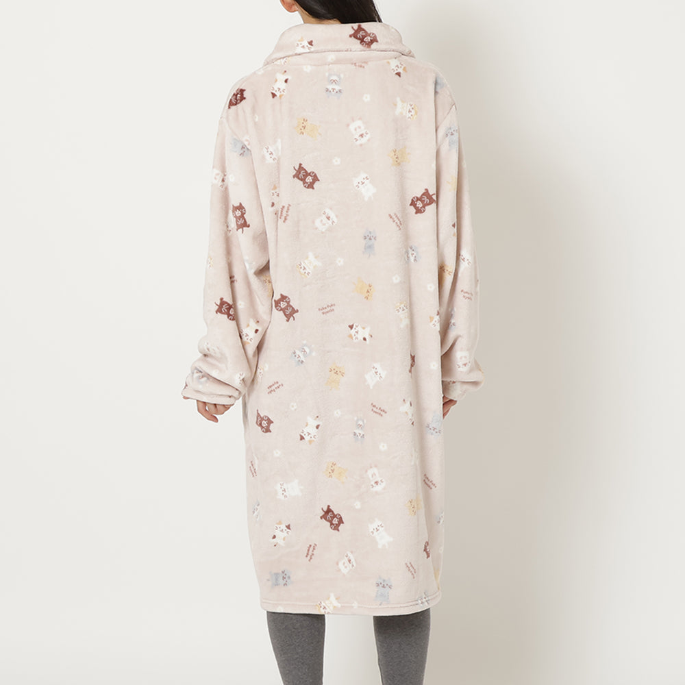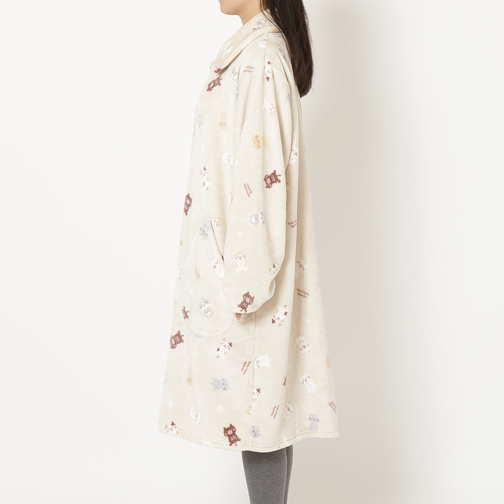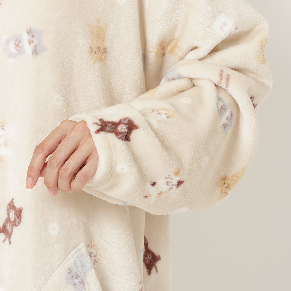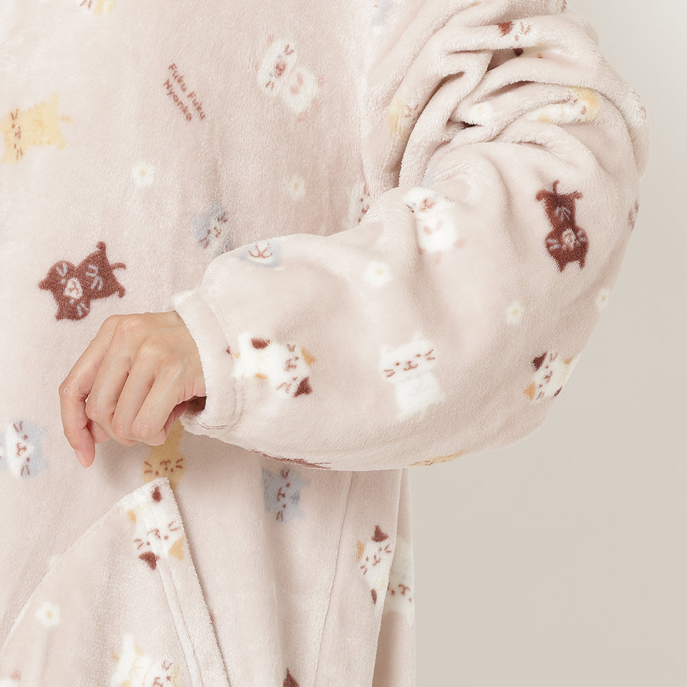 3⃣ジャケットと同柄のふくふくにゃんこがかわいいフランネルブランケットLサイズ。