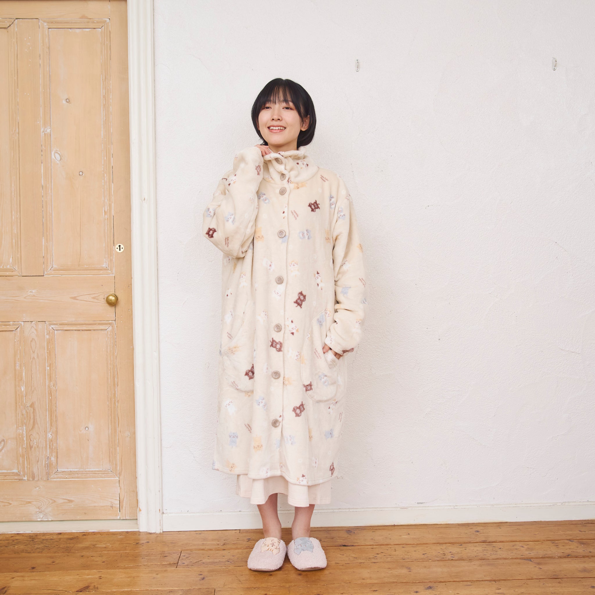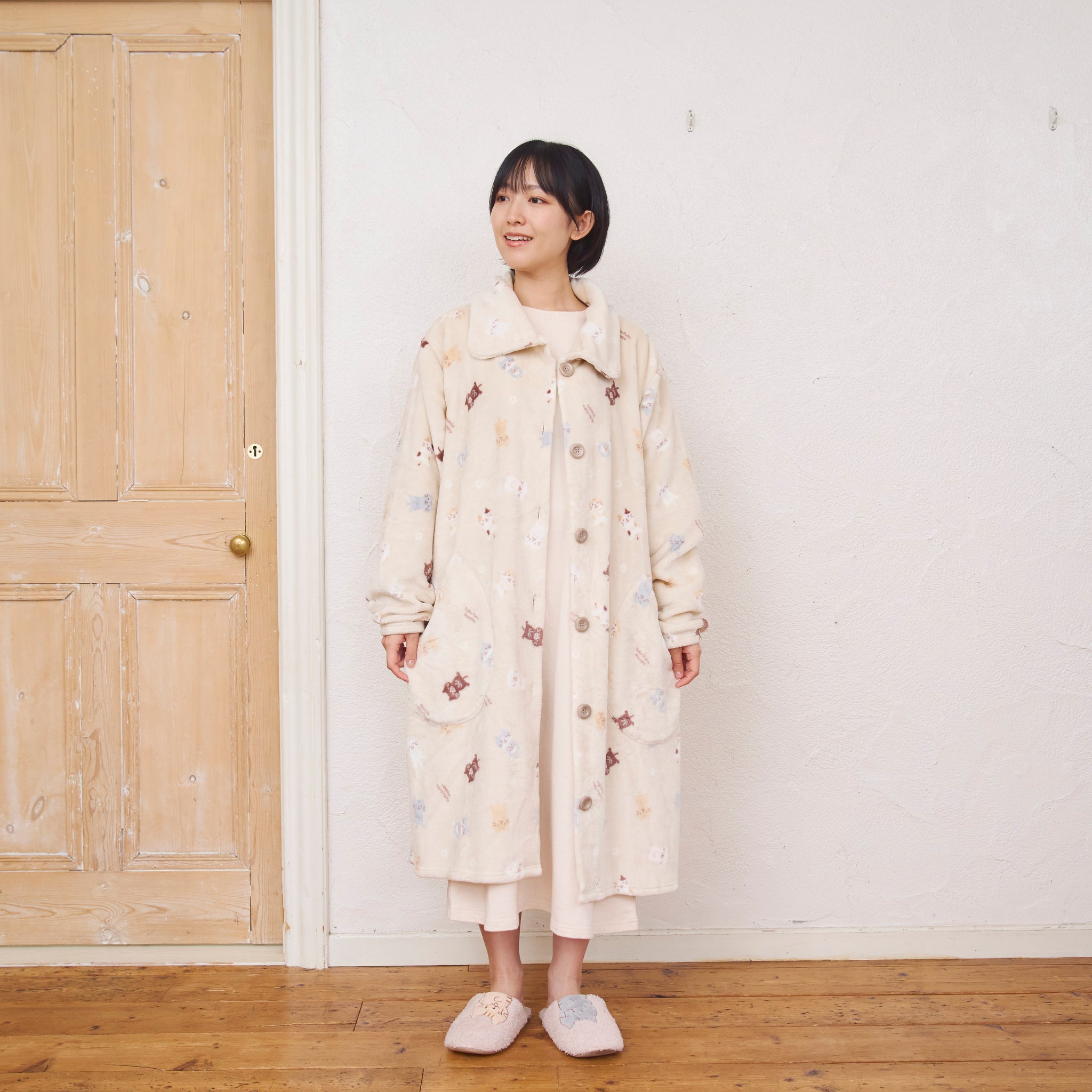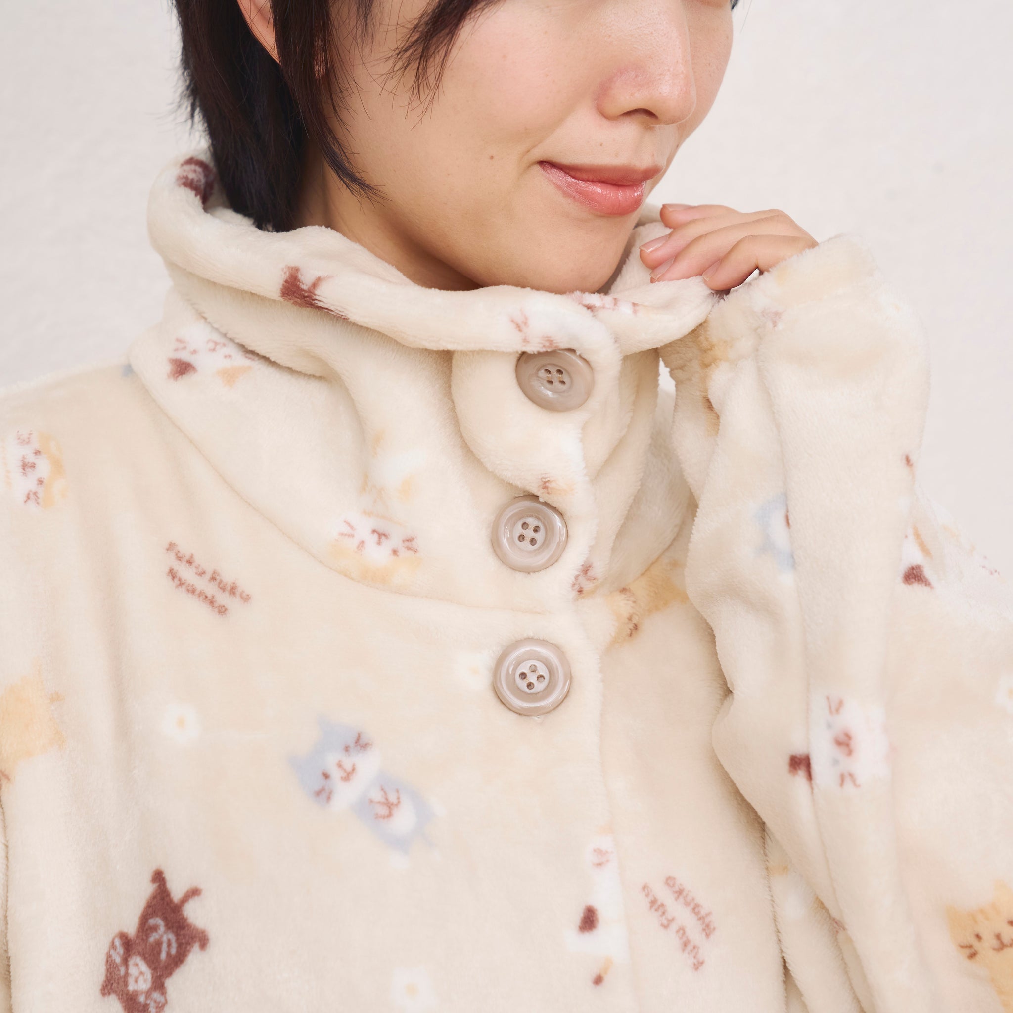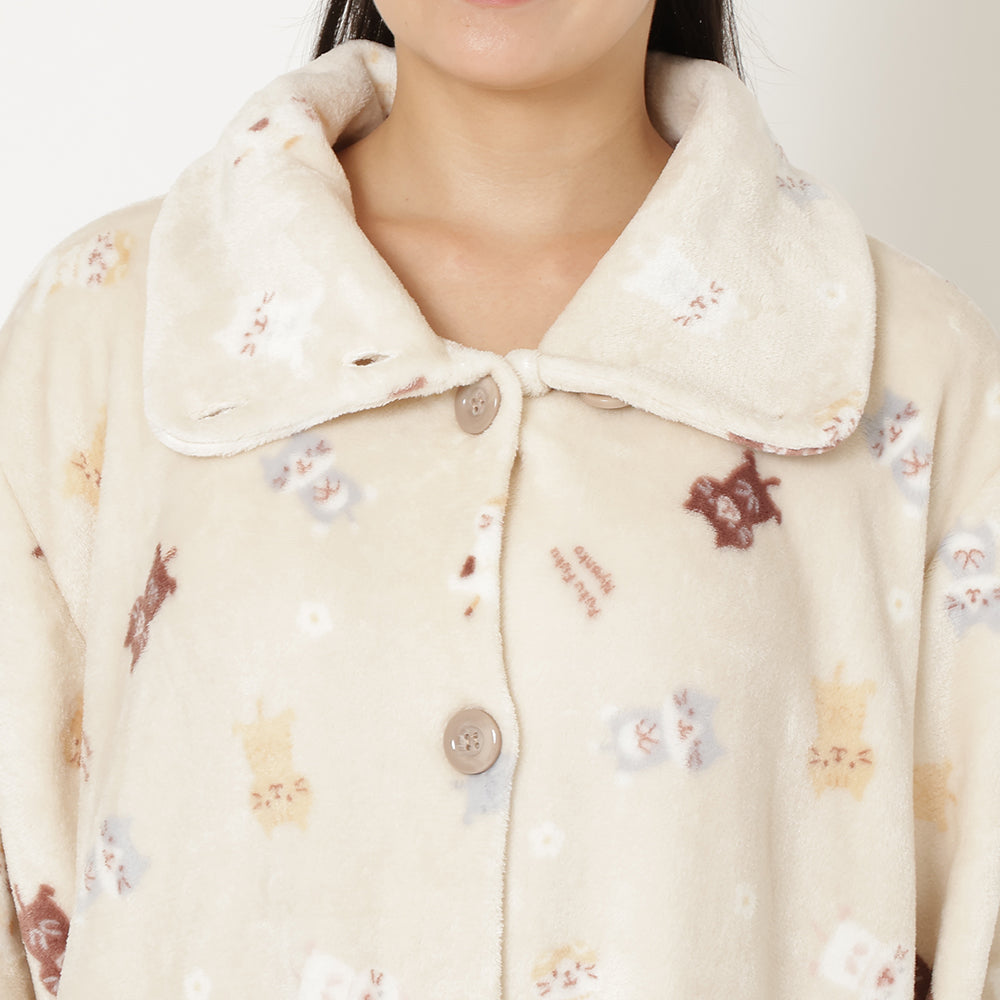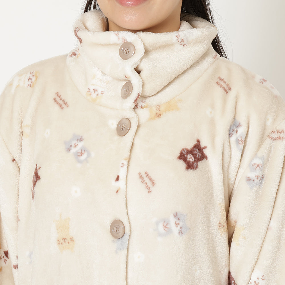 3⃣ジャケットと同柄のふくふくにゃんこがかわいいフランネルブランケットLサイズ。