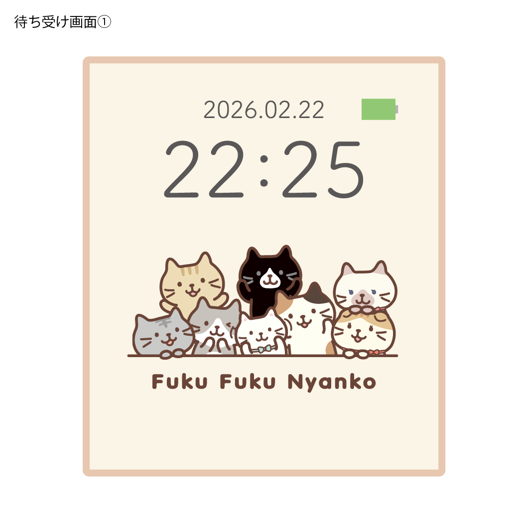 にゃんこ柄のオリジナル待ち受け画面を2種類内蔵。
