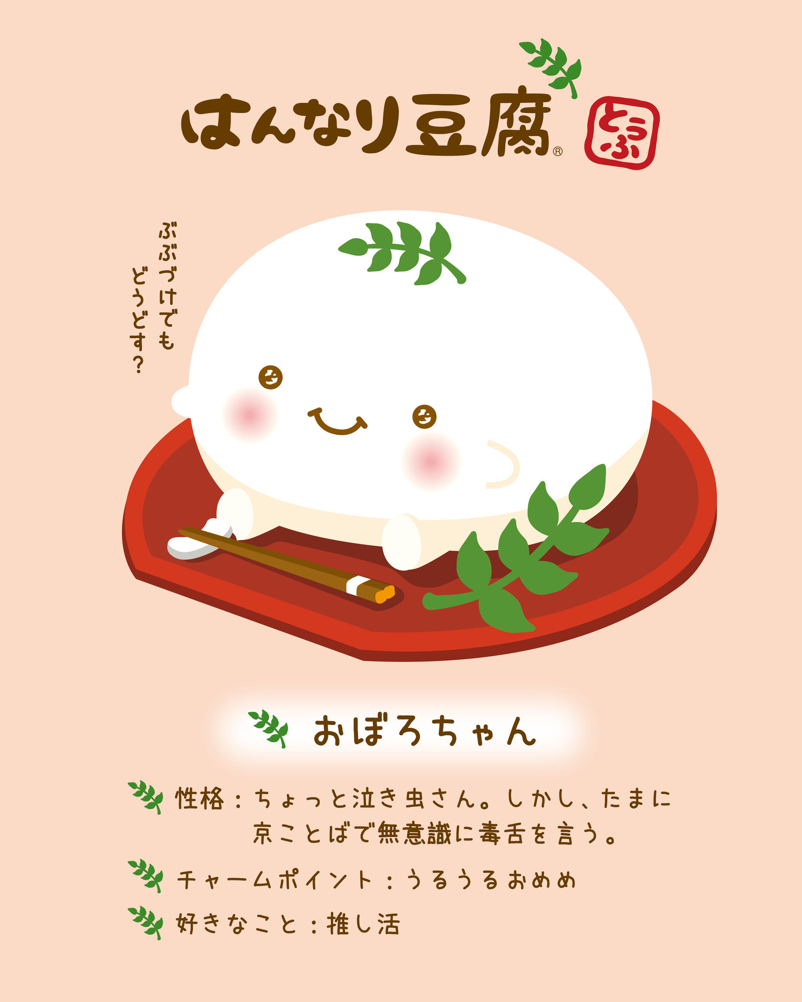 はんなり豆腐から「おぼろちゃん」が登場。「ぶぶづけでもどうどす?」の文言がちょっと癖になる新キャラ。