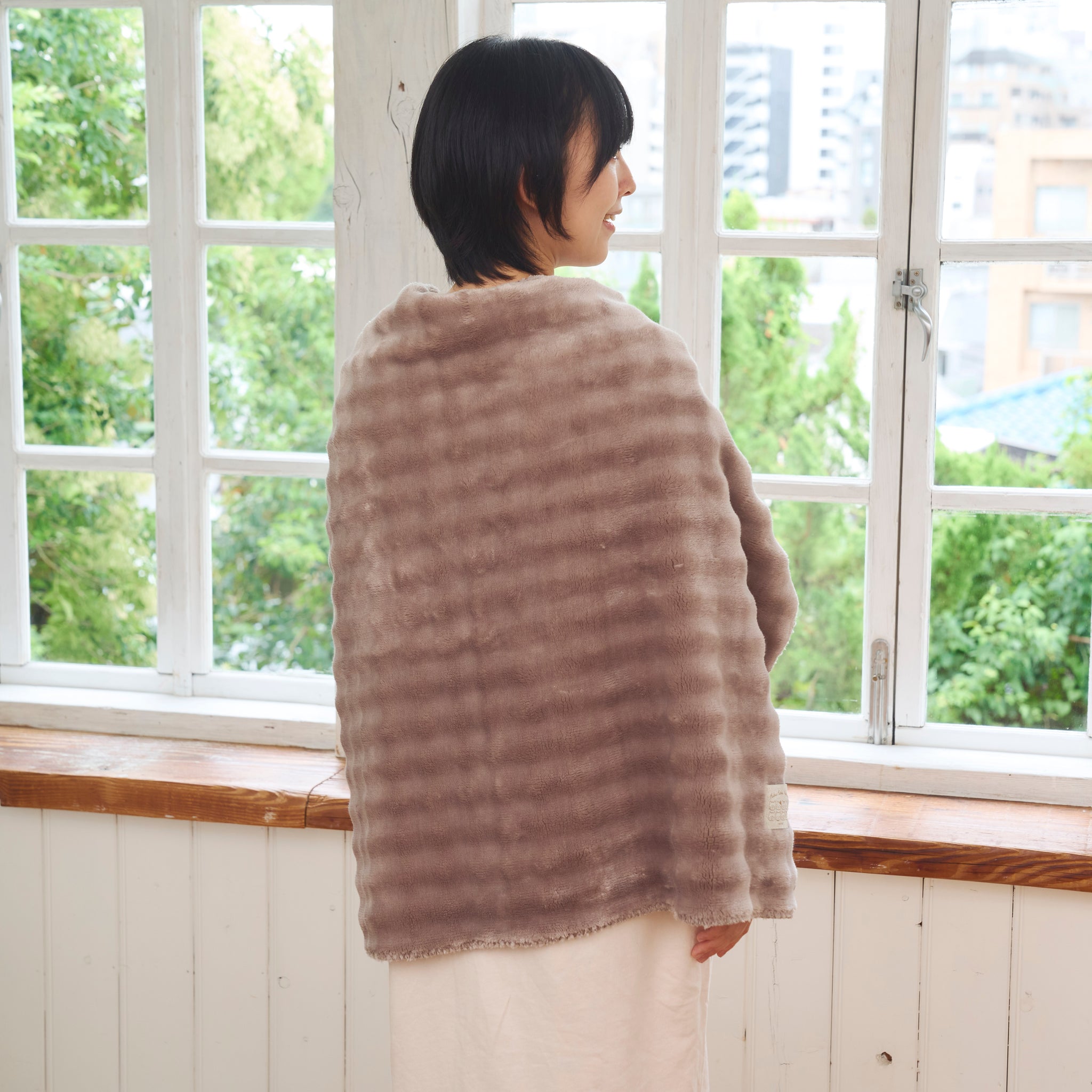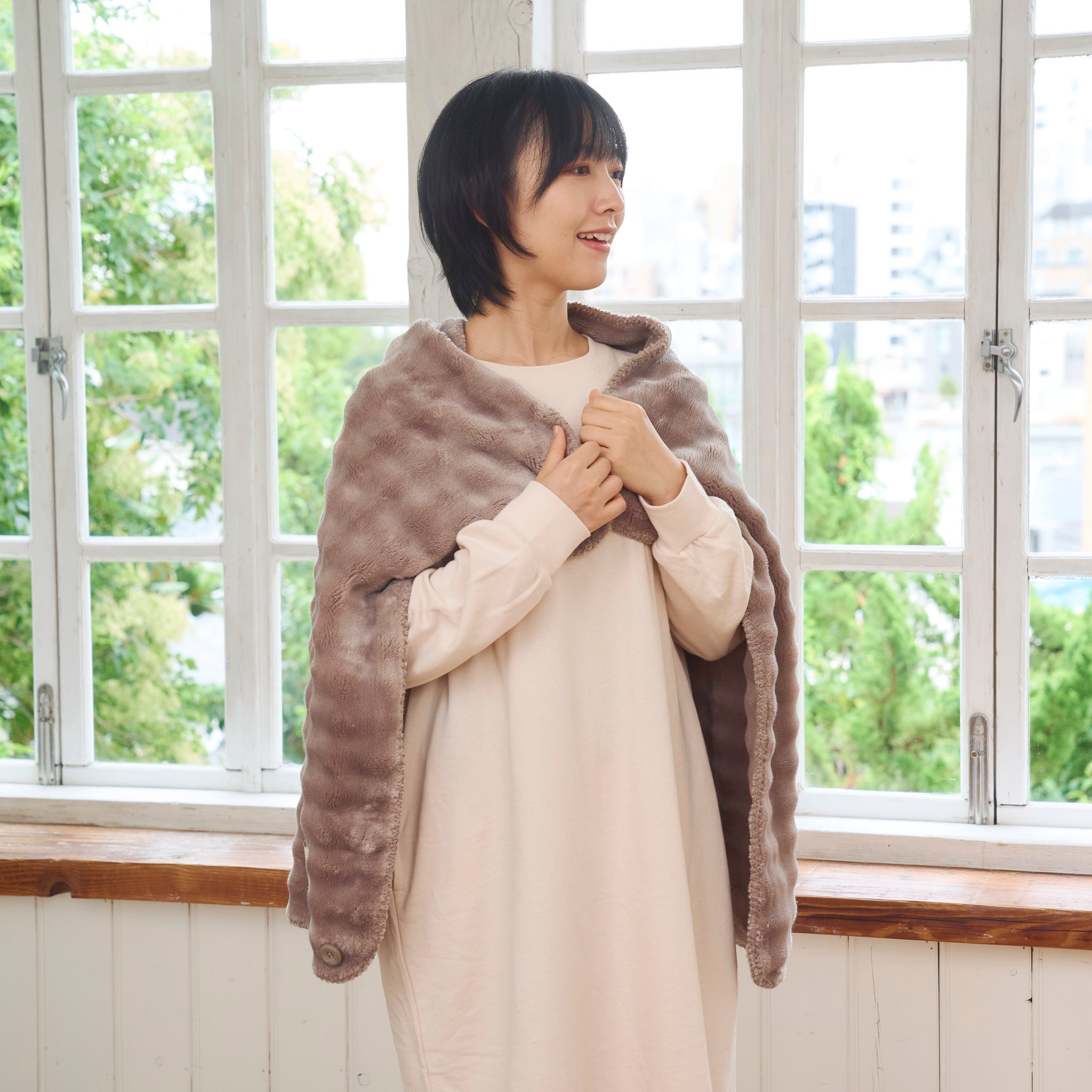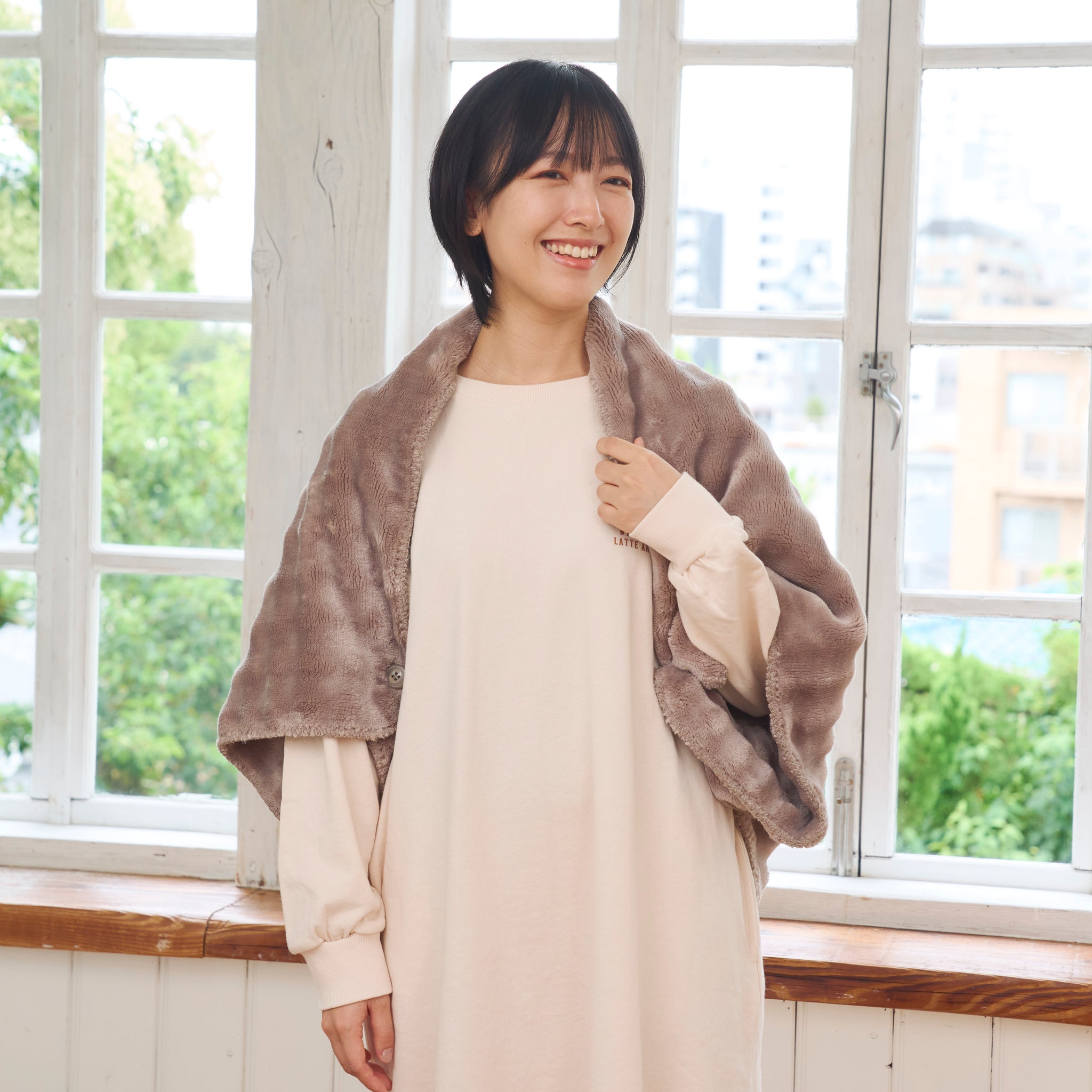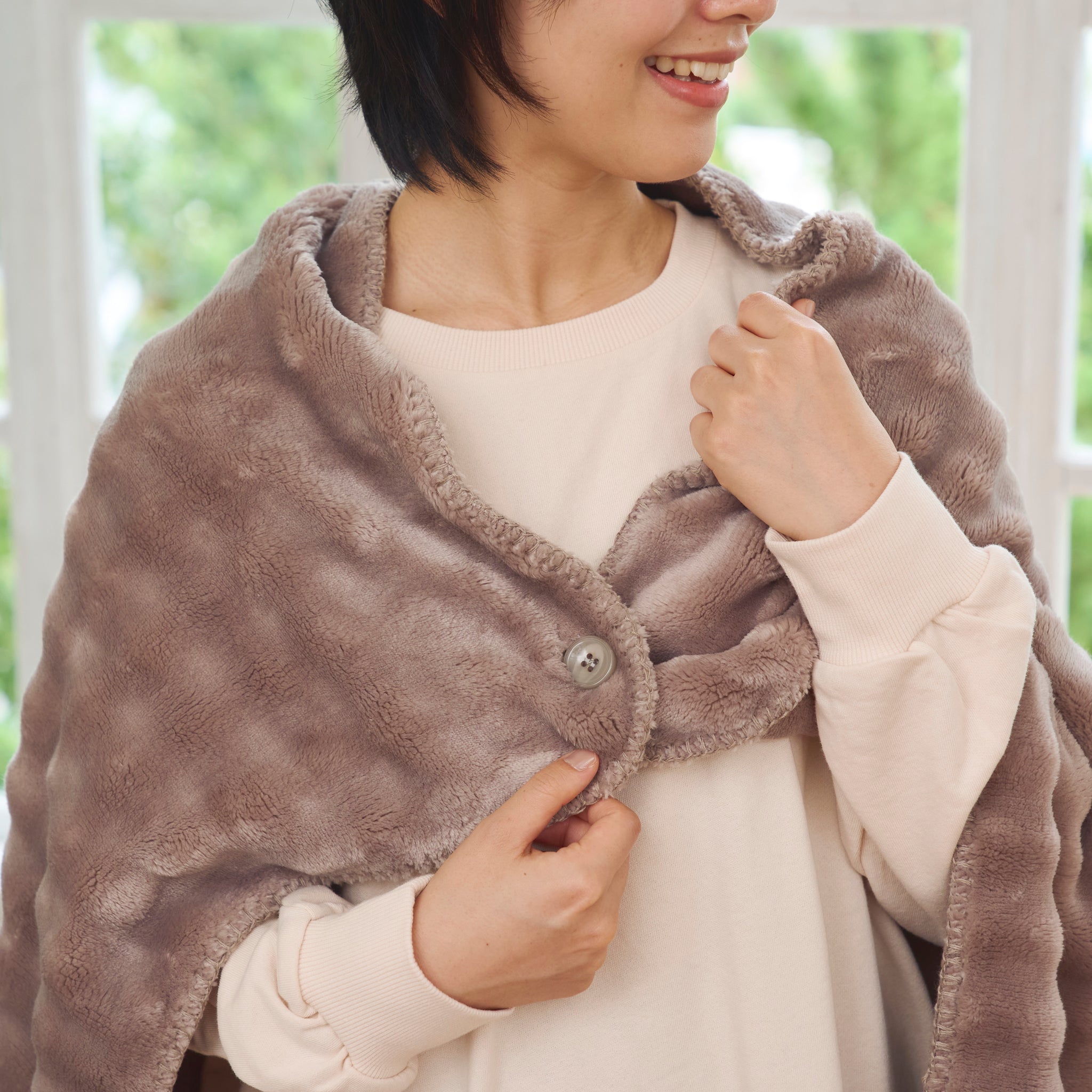 ボタンを閉じるとポンチョ・ボレロにもなる3way仕様