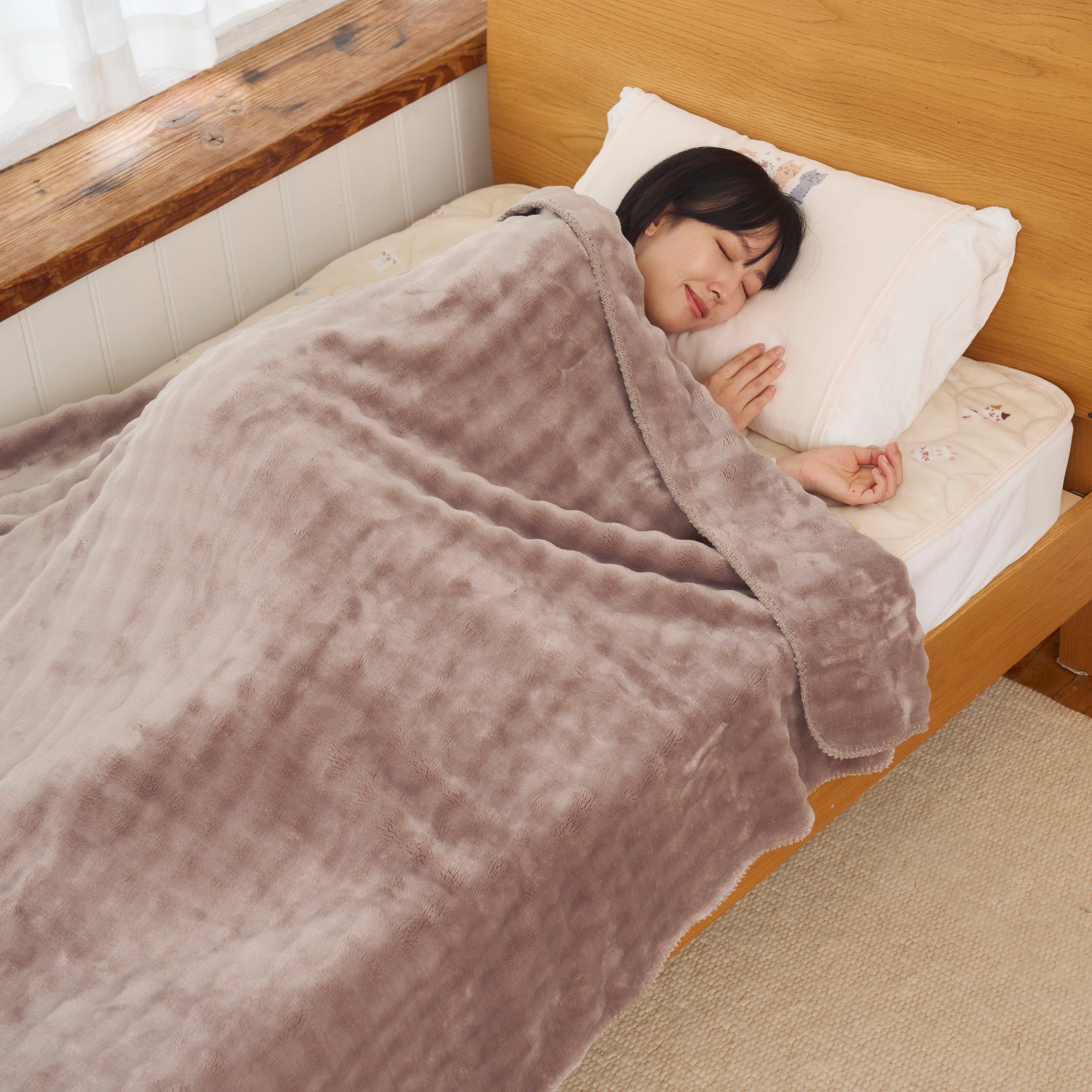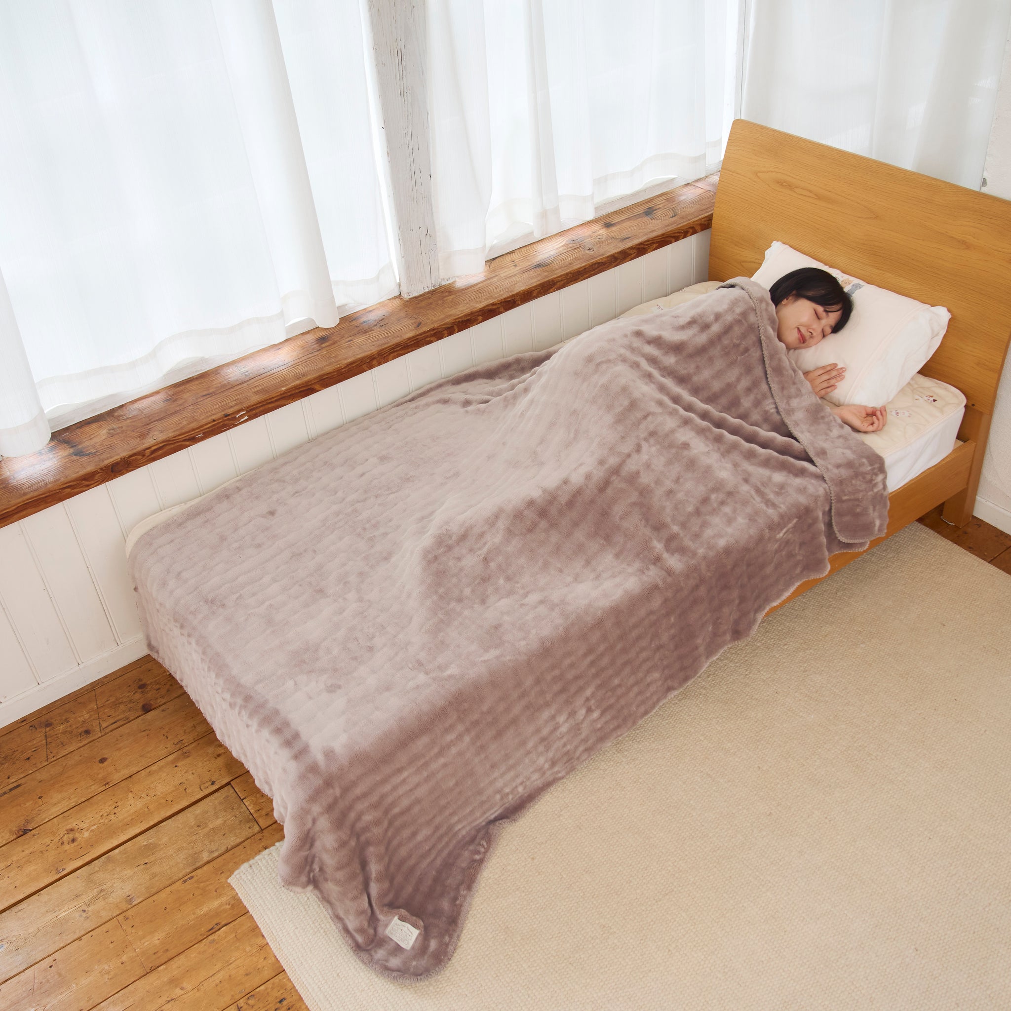 毛布にも使える大判サイズ。冬のお布団と組み合わせても重くならずあったかぽかぽか。