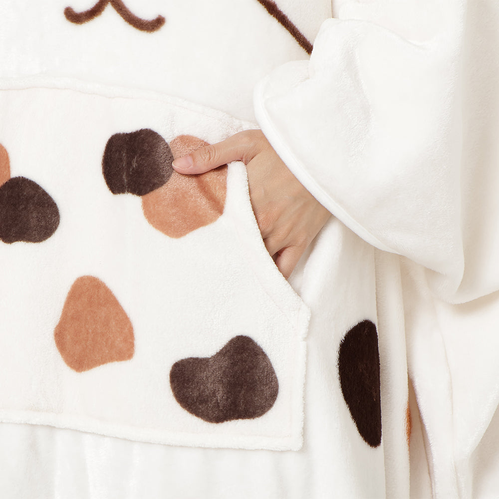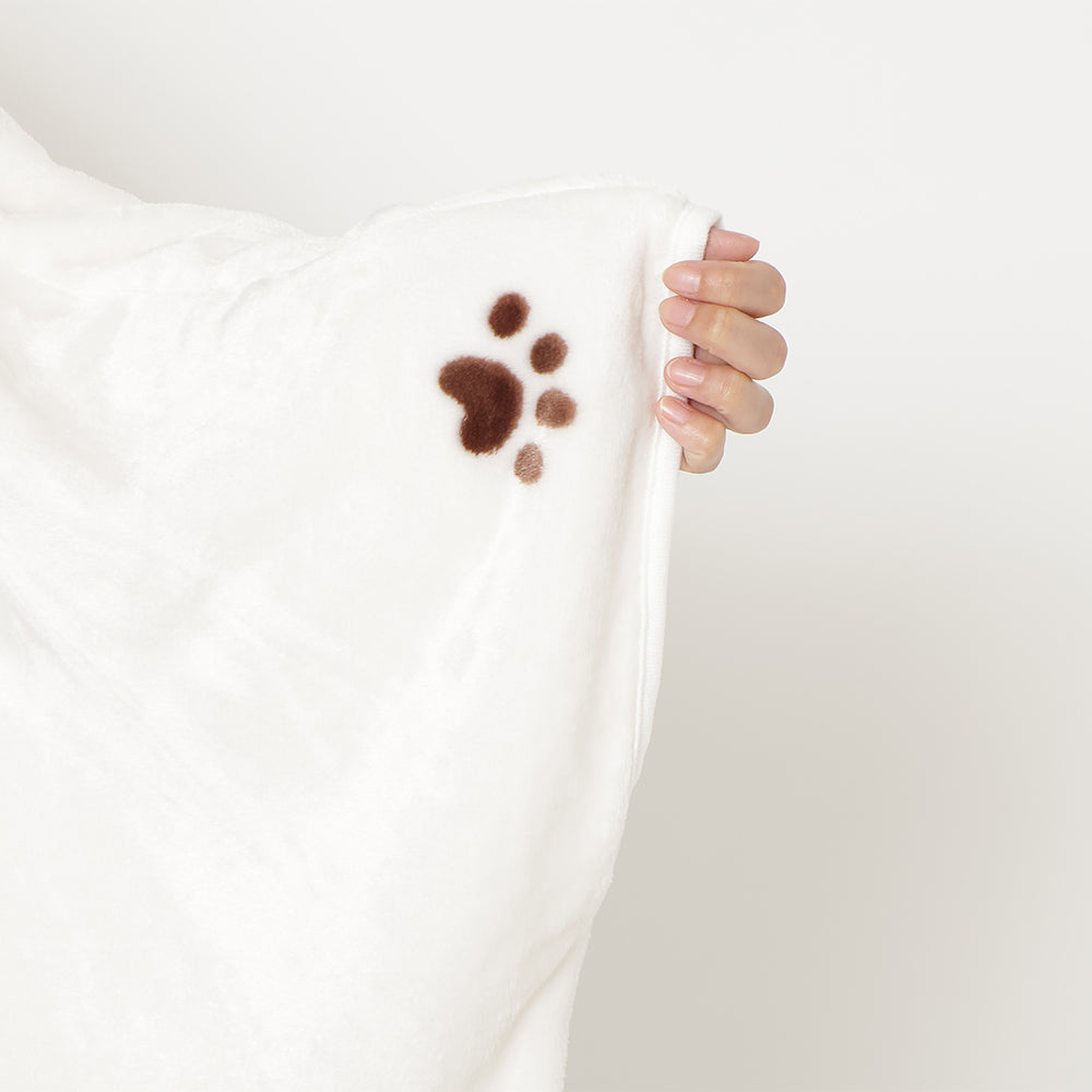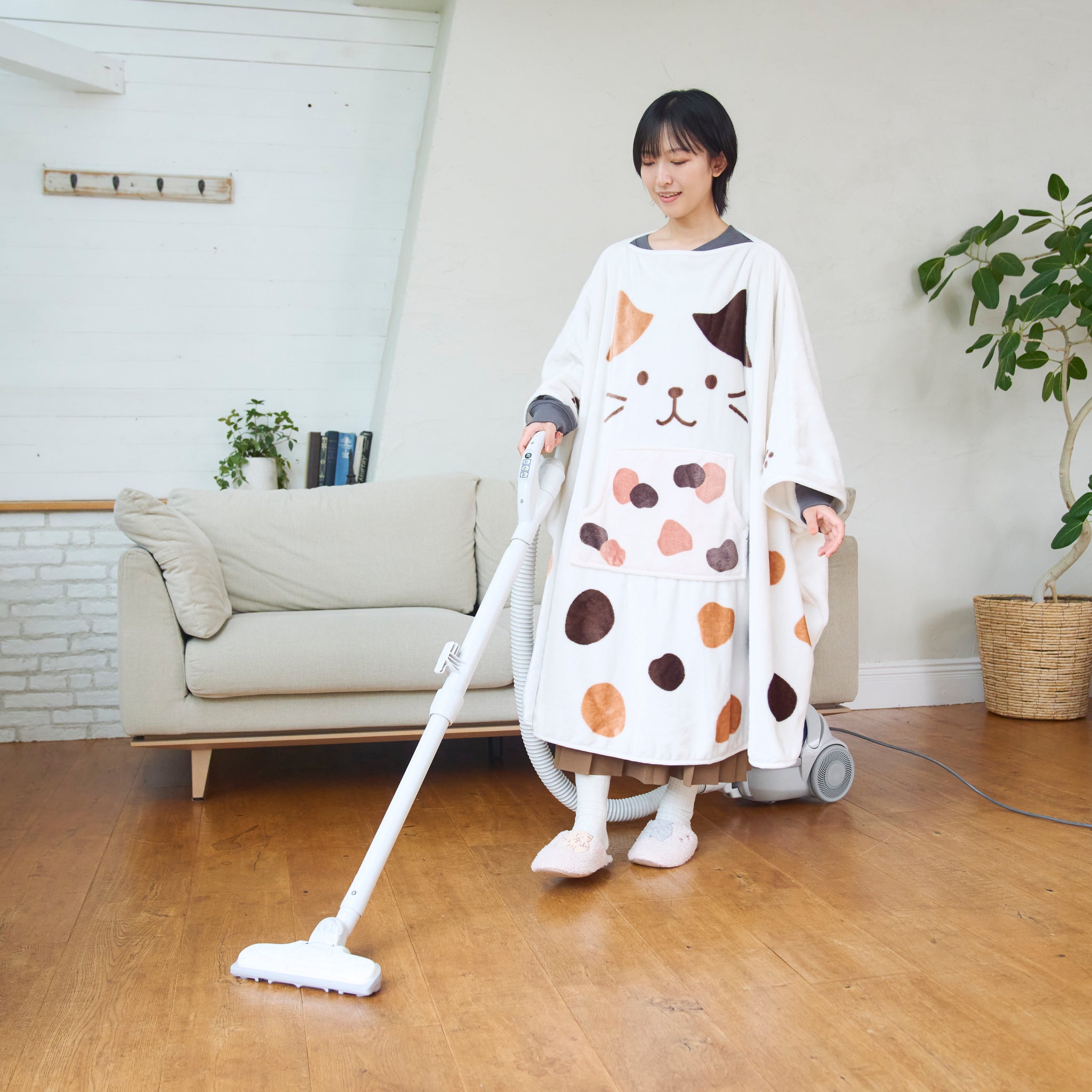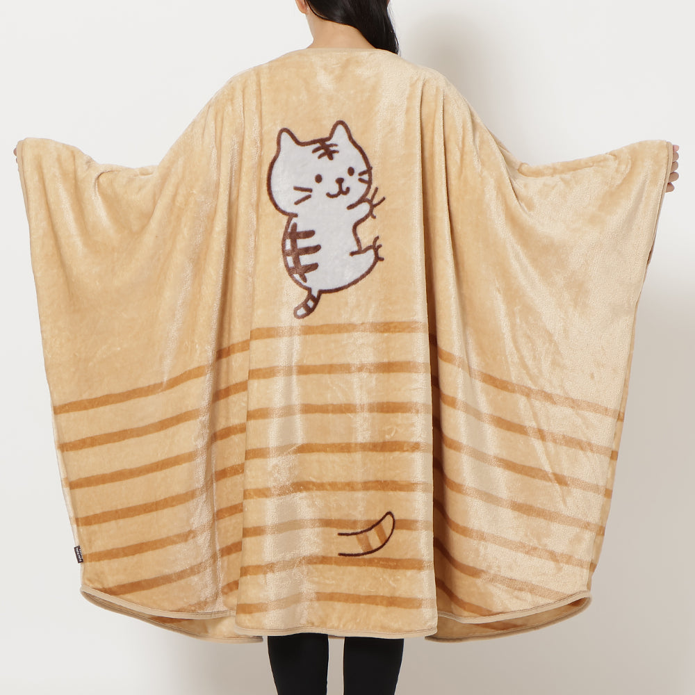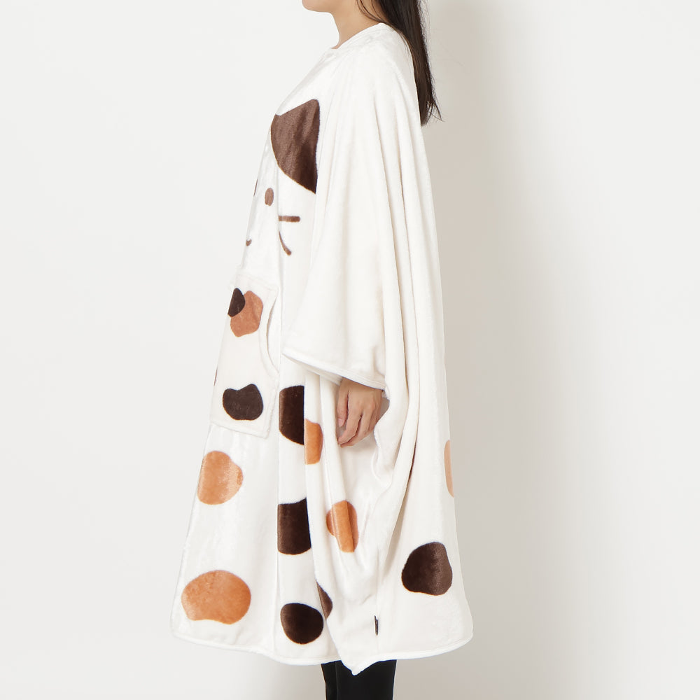 袖先にはキュートな肉球デザインがついていて、まるでにゃんこを着ているようなかわいさ!ふんわりあったか素材で、寒い冬の日もぽかぽか快適に過ごせます。猫好きさん必見の癒し系着る毛布です🐱✨