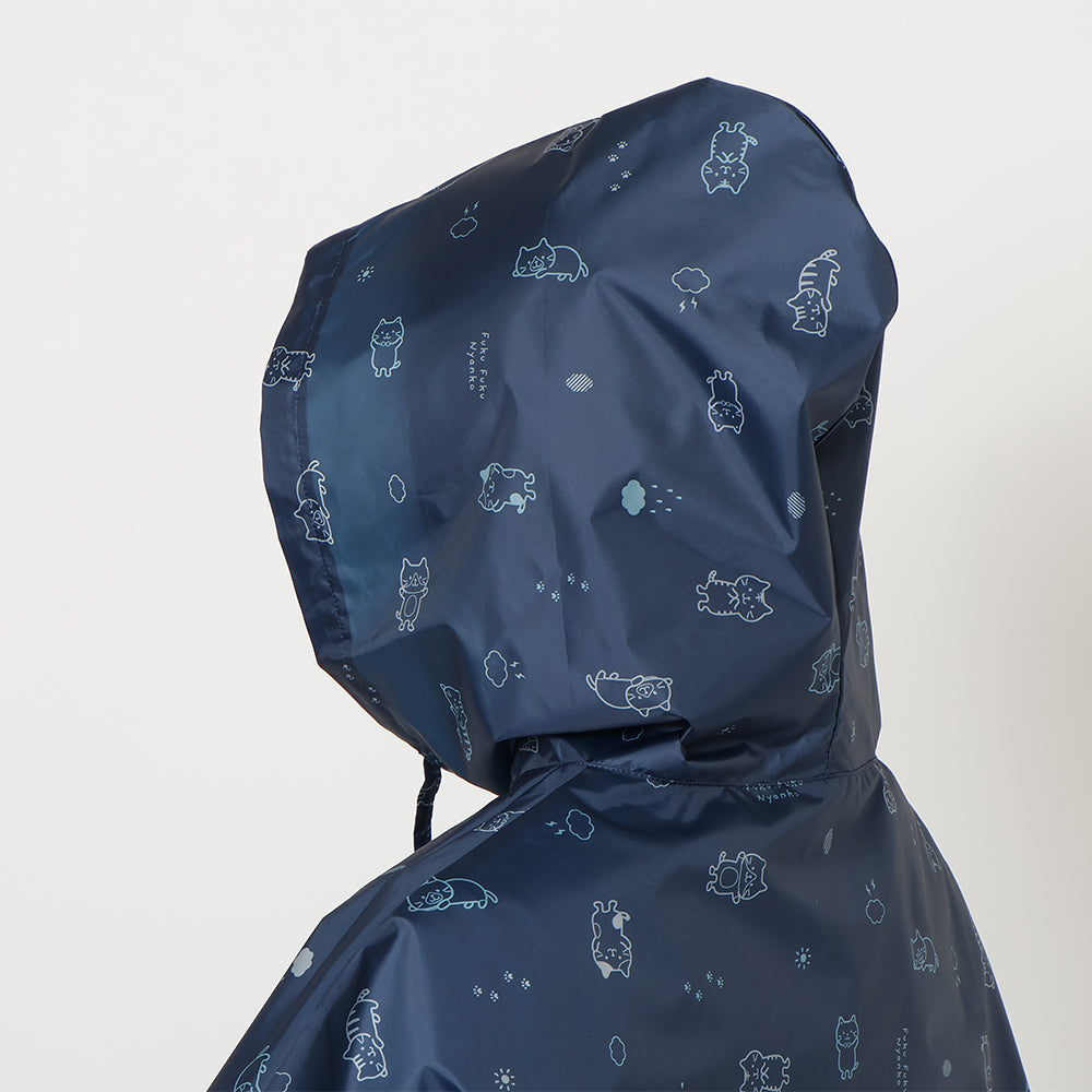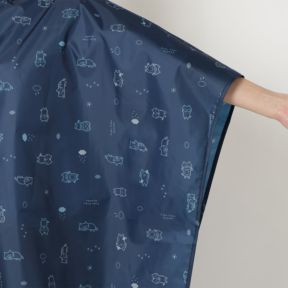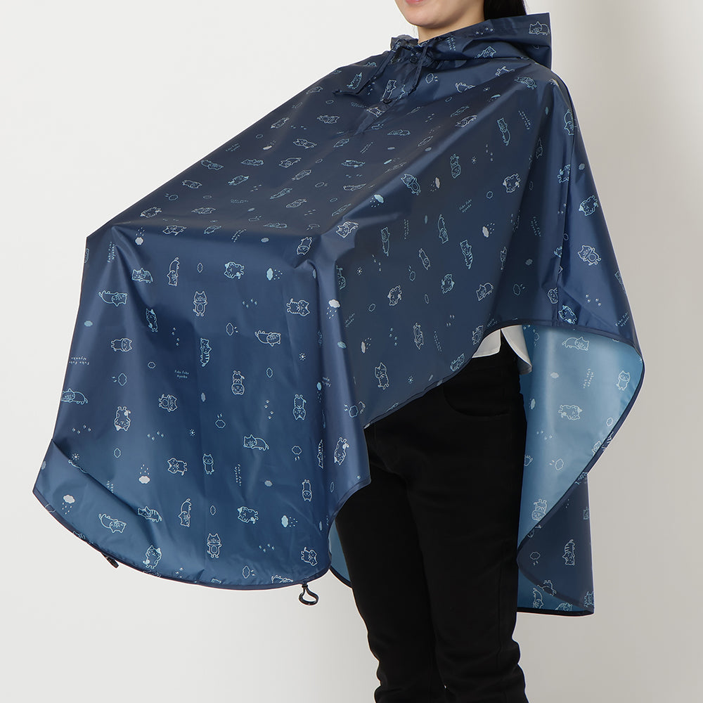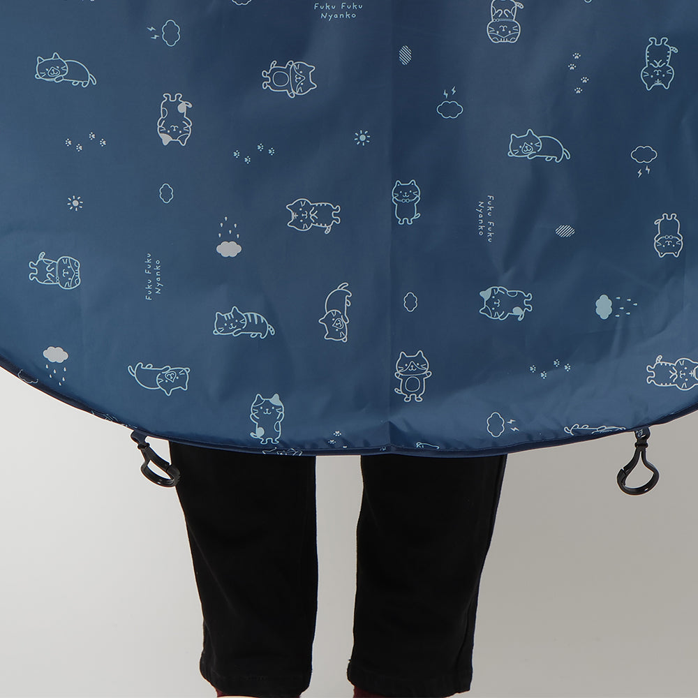 チャコールグレーとネイビーで使いやすいながらもにゃんこがしっかりプリントされたかわいいレインチャリポンチョです♪