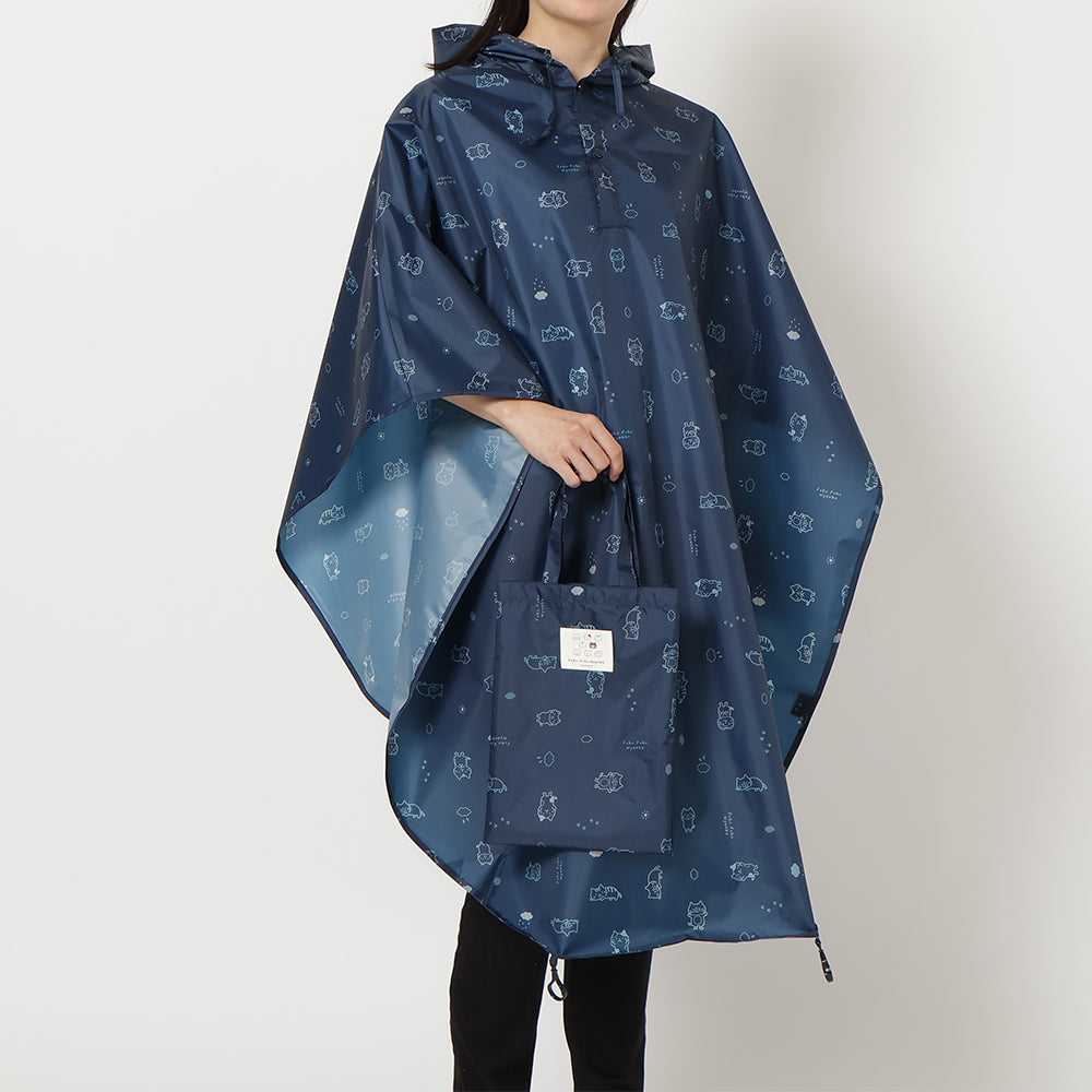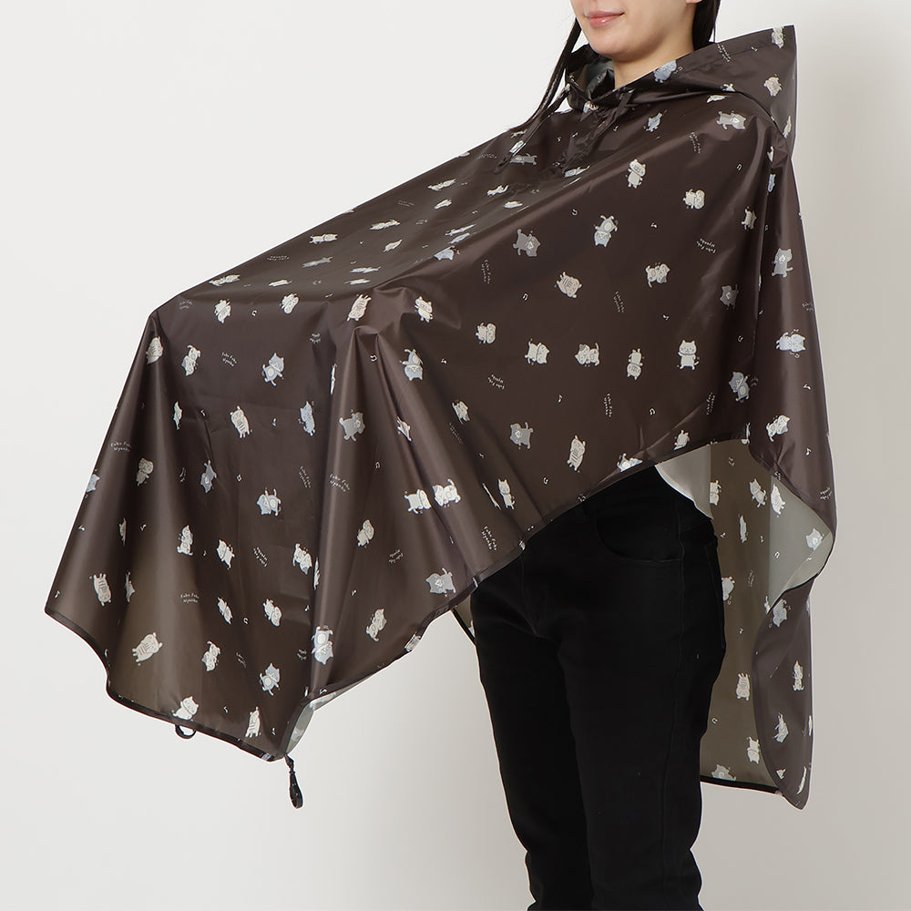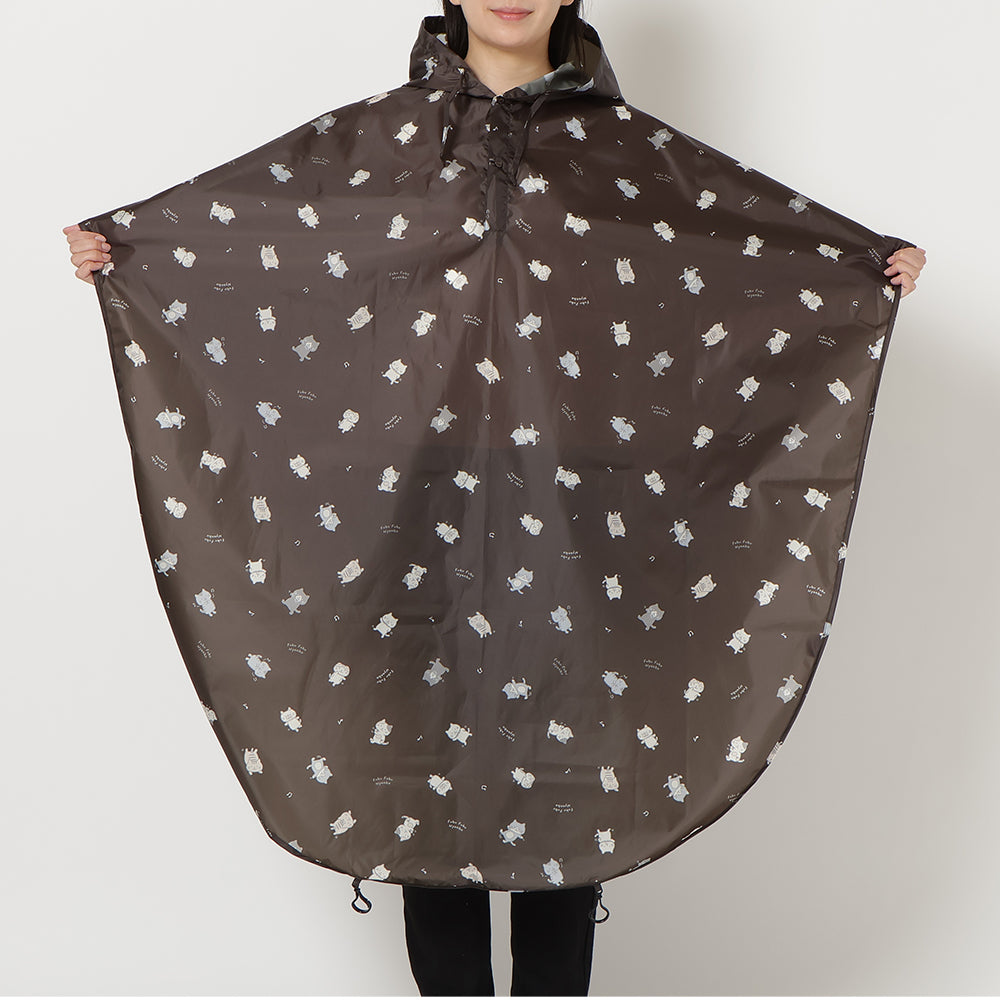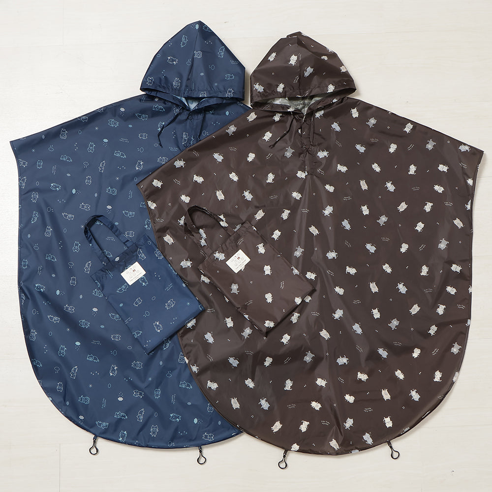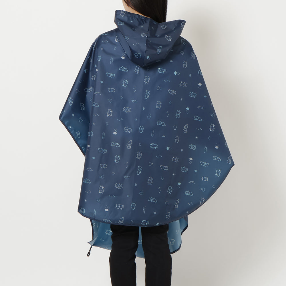 チャコールグレーとネイビーで使いやすいながらもにゃんこがしっかりプリントされたかわいいレインチャリポンチョです♪