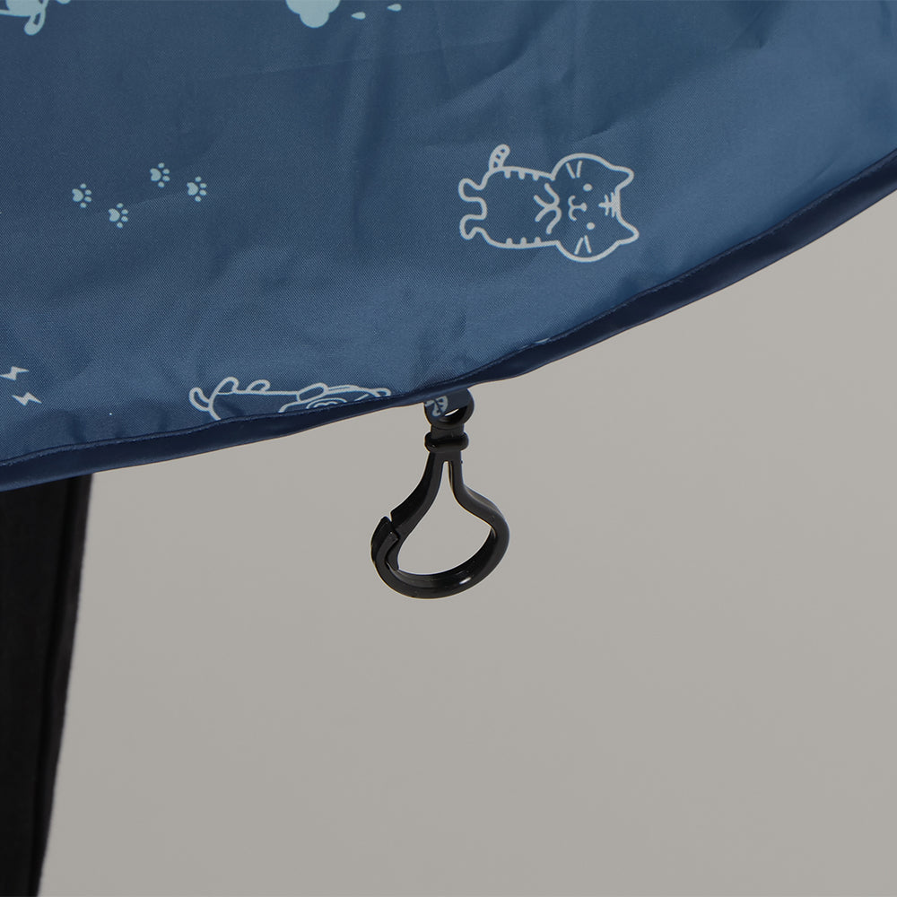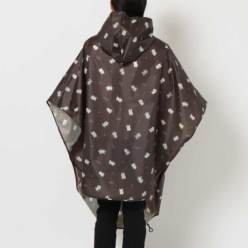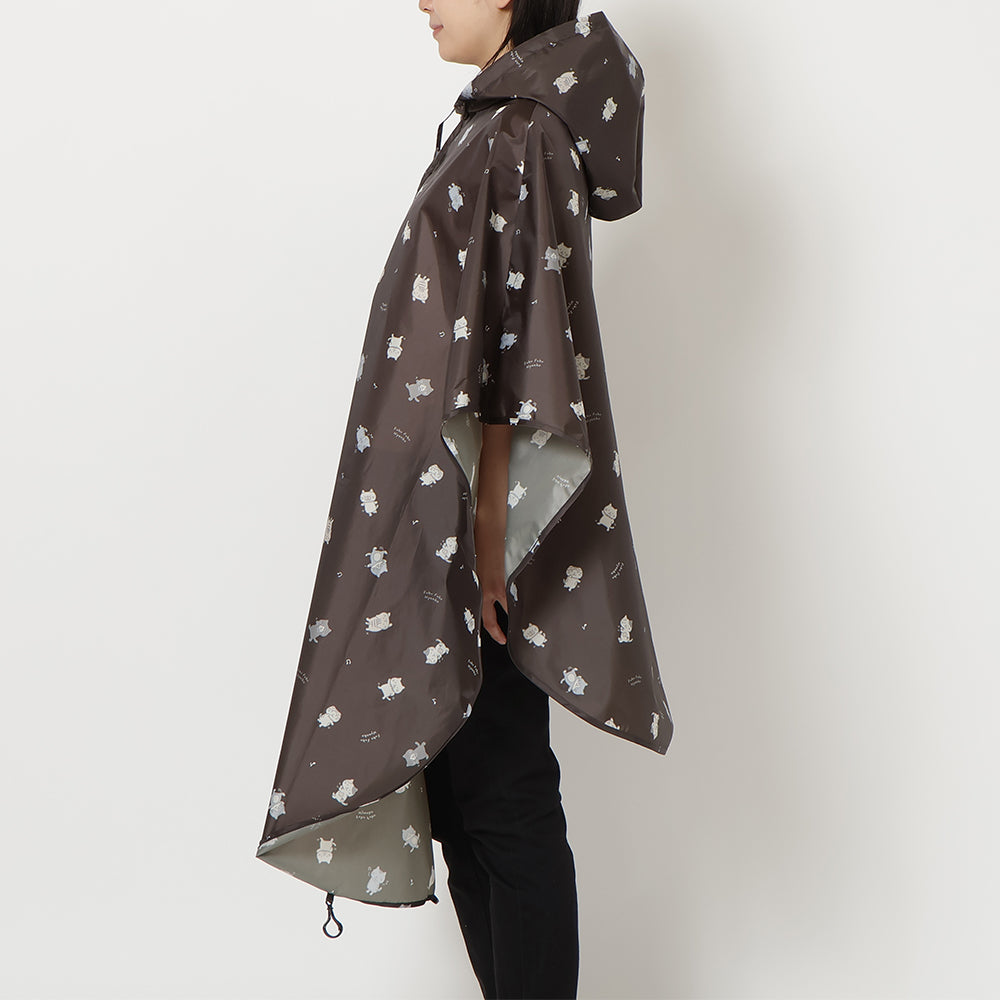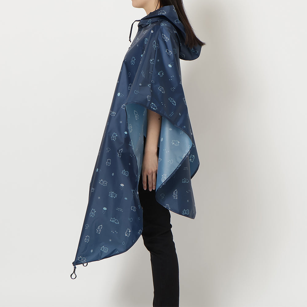 チャコールグレーとネイビーで使いやすいながらもにゃんこがしっかりプリントされたかわいいレインチャリポンチョです♪